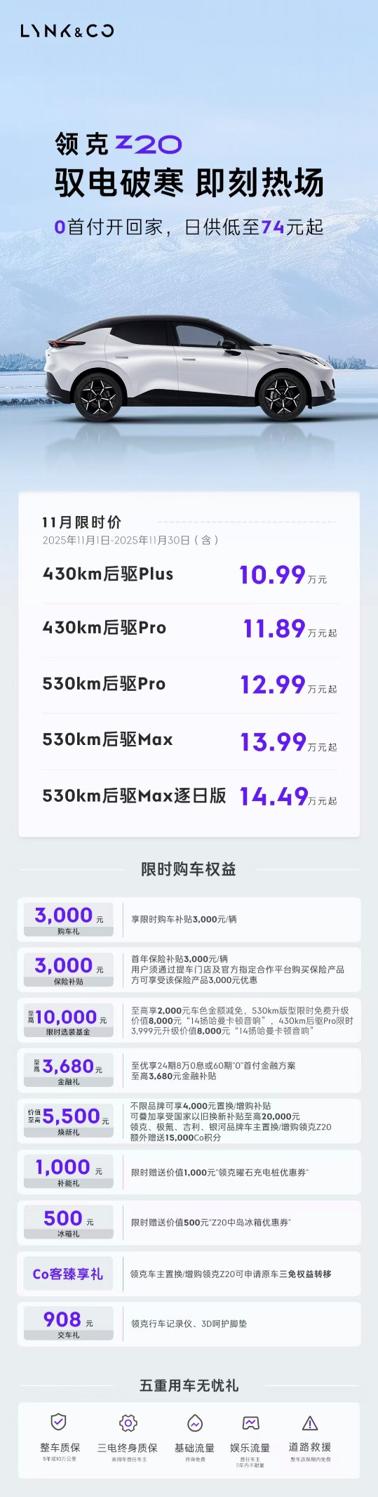 为了让消费者更轻松地拥有这份精致,领克同步推出了诚意十足的十一月购车权益。这包括直接的购车与保险补贴,高额的限时选装基金(其中包含了免费升级价值不菲的品牌音响这一极具吸引力的选项),以及灵活的金融方案和针对置换用户的额外补贴。此外,从充电桩优惠到交车礼,再到涵盖整车、三电系统、流量和救援的“五重无忧礼遇”,这些权益共同构成了一套覆盖购车、用车全周期的价值体系,切实降低了拥有门槛。